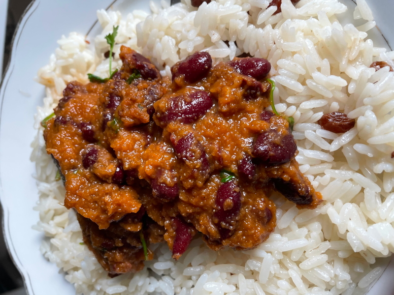 Cook for 5 min. Then the beans will be added. After that, add water.